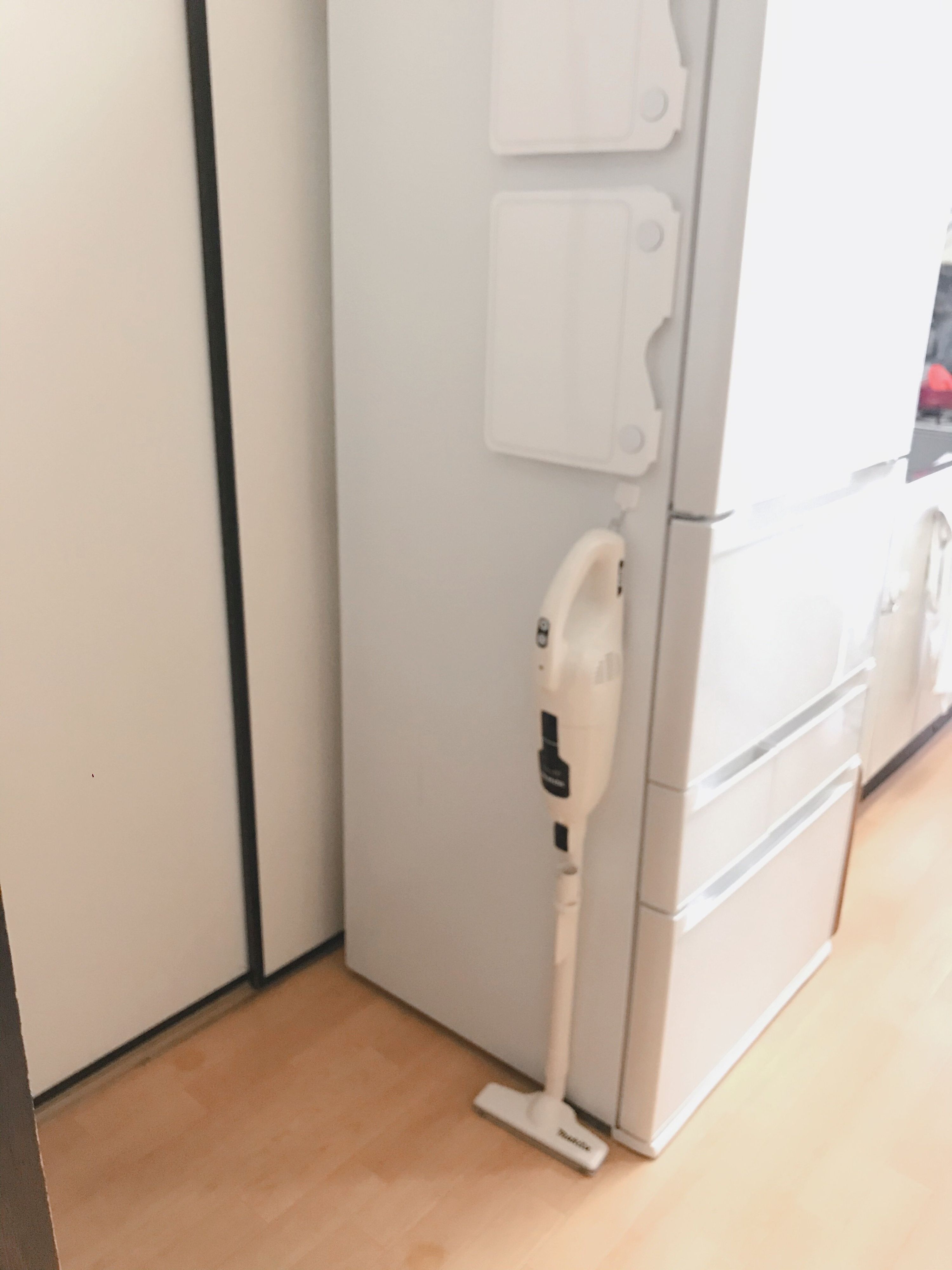 冷蔵庫横に設置された掃除機