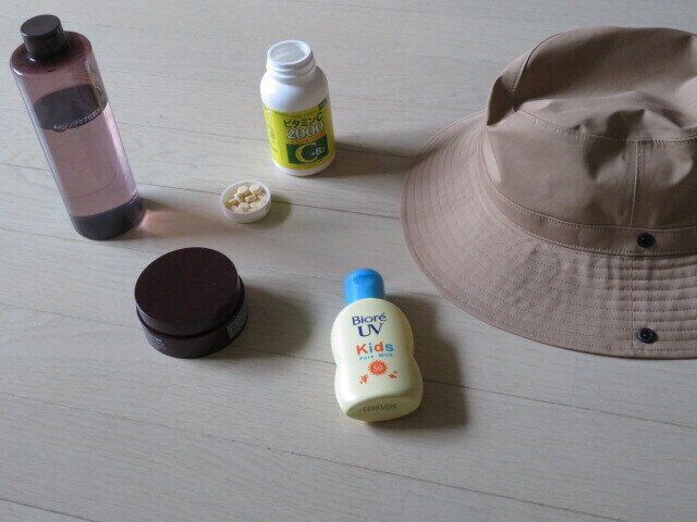 外に出る時は紫外線吸収剤不使用の日焼け止めを塗り、帽子をかぶり、こまめにビタミンCを飲みます。