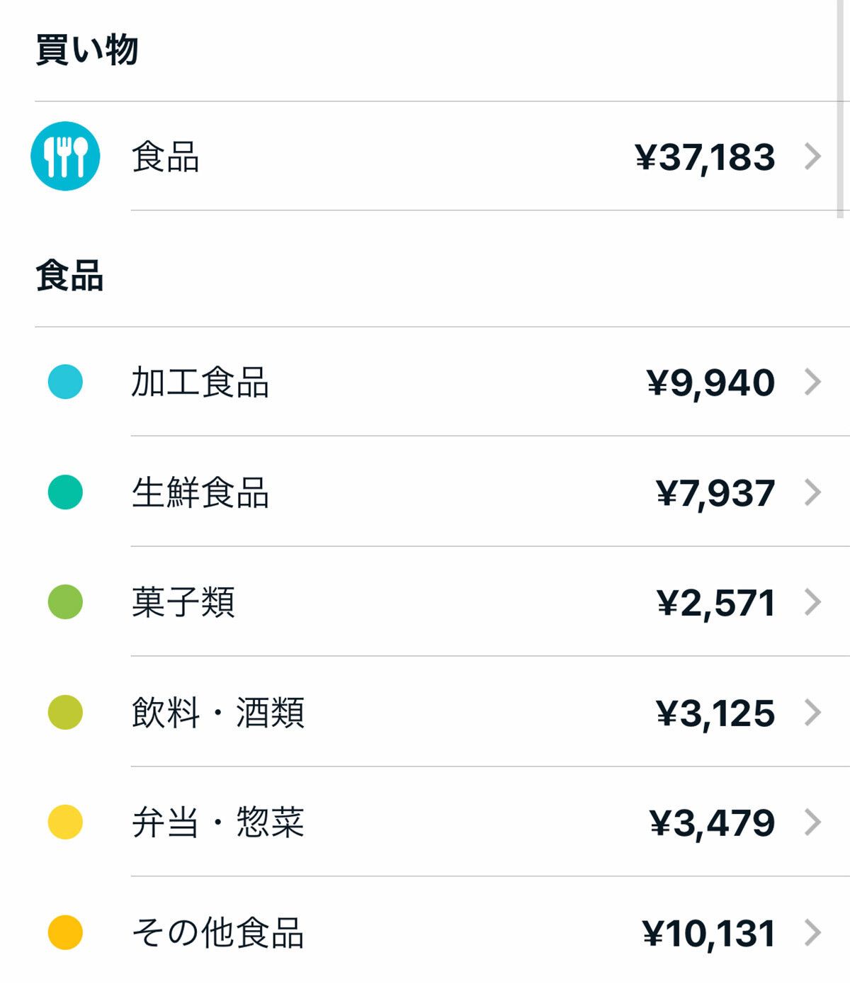 その他食品の金額が大きいのは、お米や、バーコードがない食品を登録したもの、消費税分が入っているためです。
