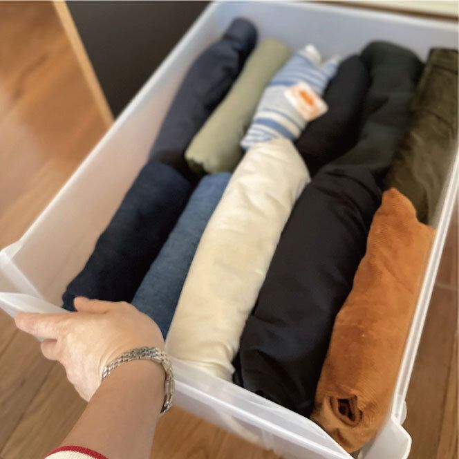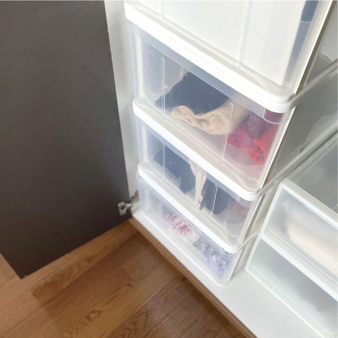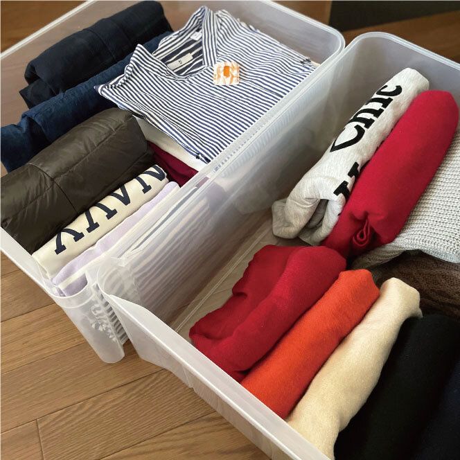ざっくり夏服と冬服それぞれ1つのケースに収納。