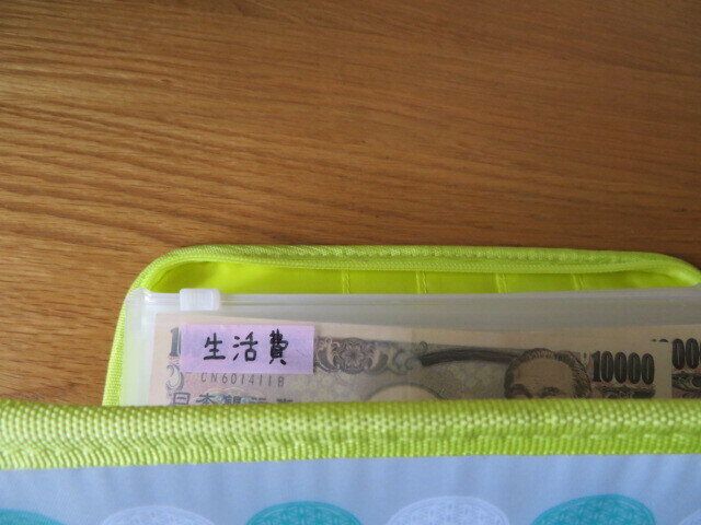 ポーチに現金で使う1か月の生活費をまとめて入れ、残りのお金を口座に入金します。