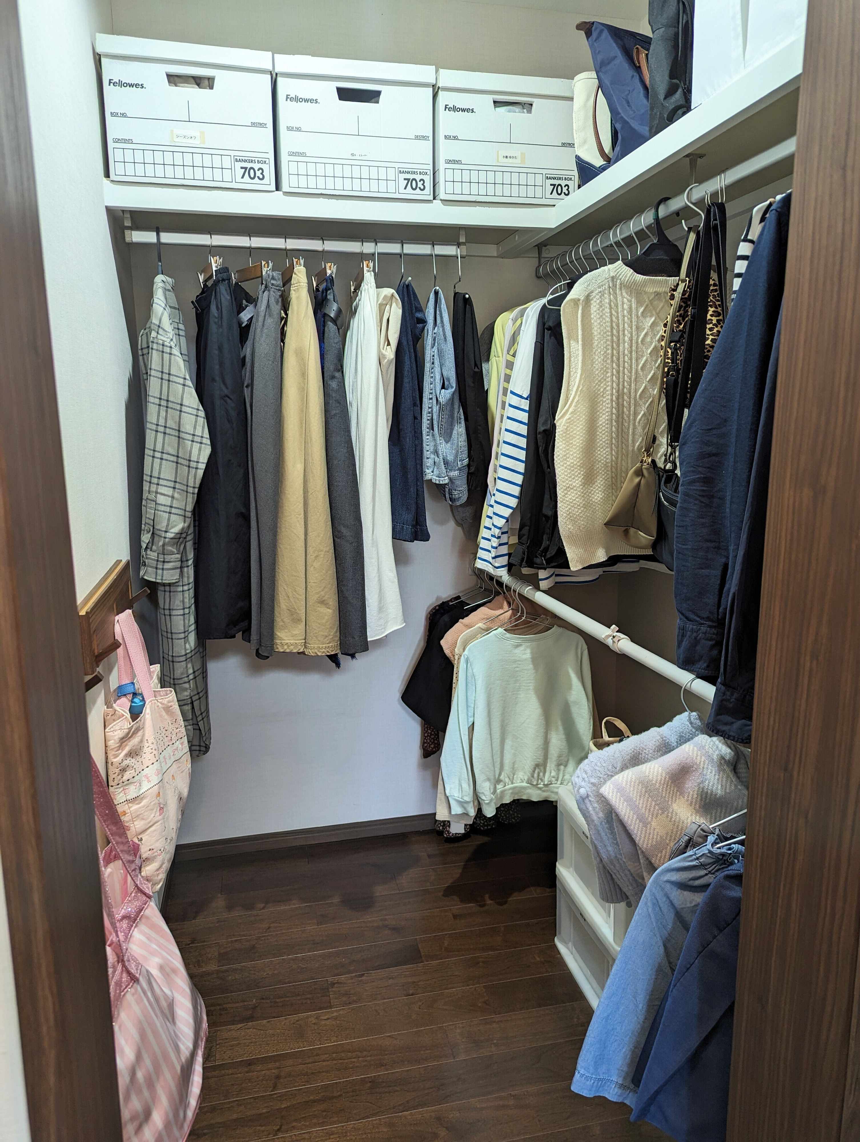 気候がほぼ冬になったので、まずはファミリークローゼットを冬仕様に変更。サイズアウトしていた子どもの冬用アウター4点をリサイクルショップに持ち込みました。シーズンより少し早めに売ると値段がつきやすいそうで、今回は¥1,000の売り上げに。