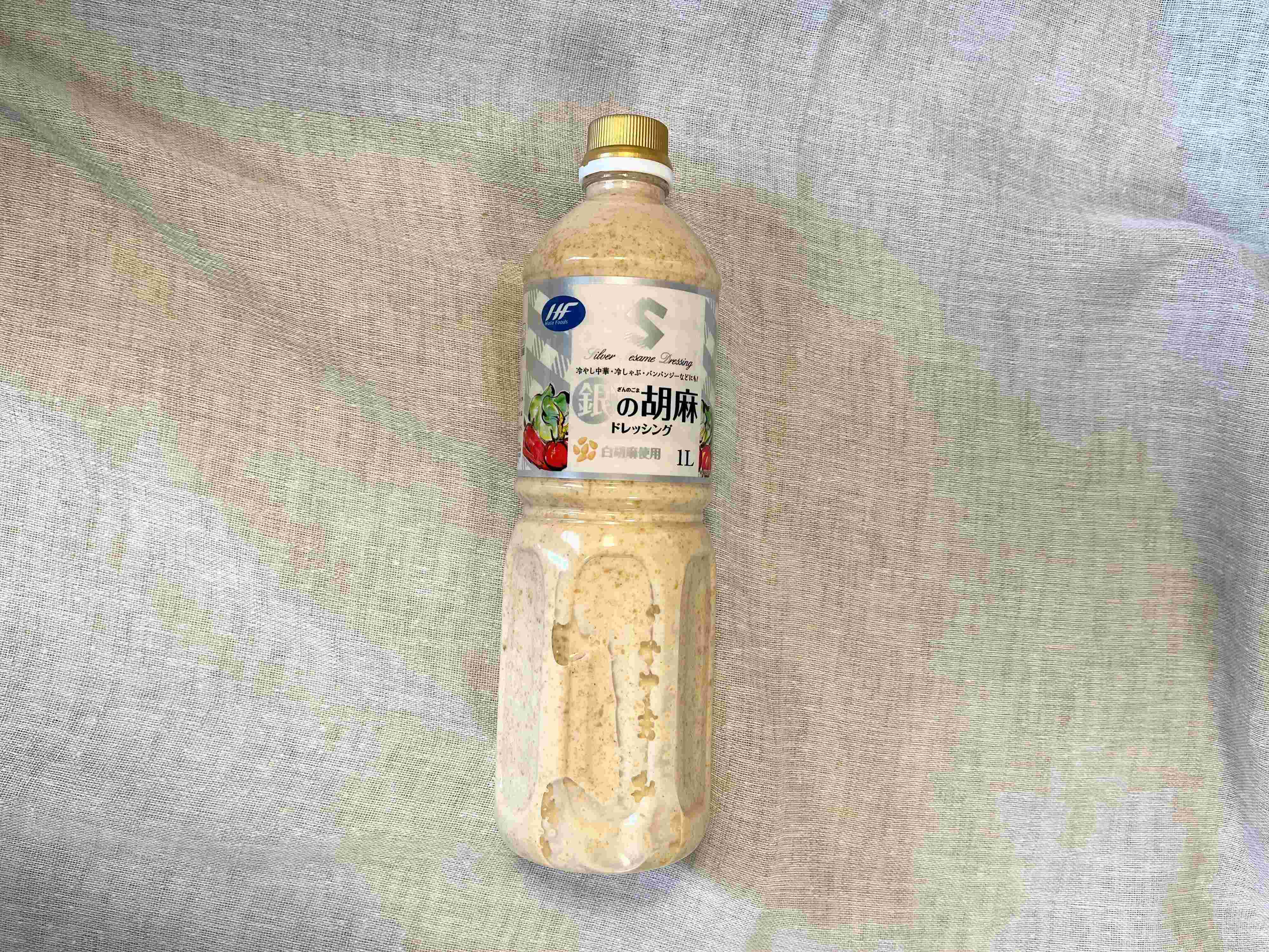 2つ目は、こちらもたっぷり1L入りの「銀の胡麻ドレッシング」の紹介です。ドンと1L入ったドレッシングなのですが、実は購入するまで少し悩んでしまいました。