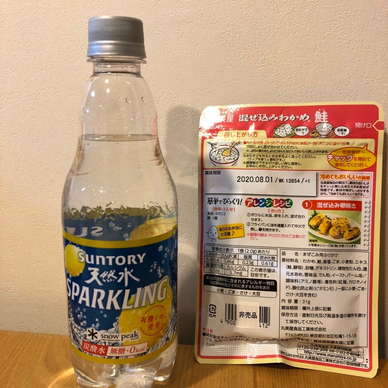 ちなみに、こちらの画像「丸美屋の混ぜ込みわかめ」も、炭酸水6本パックについてきたものです。