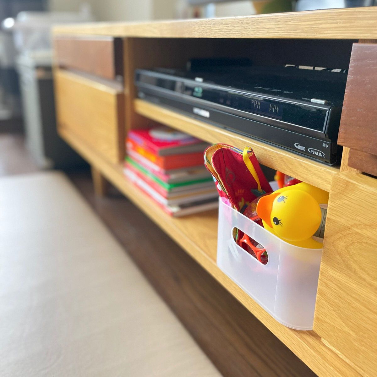 ※TVボードの空きスペースで息子の本とおもちゃを収納。