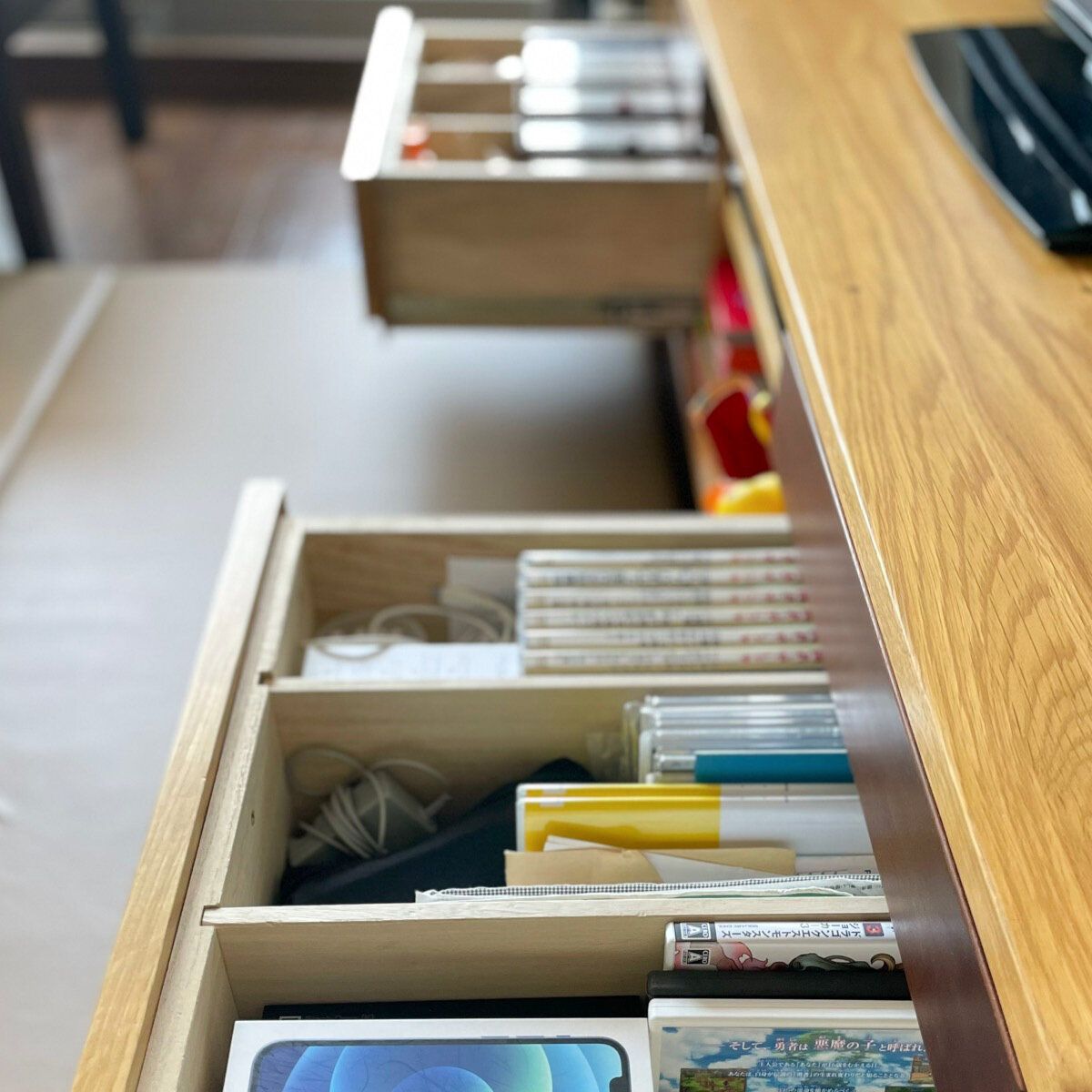 リビングのTVボードの収納スペースに夫のほとんど見なくなったDVDよりも