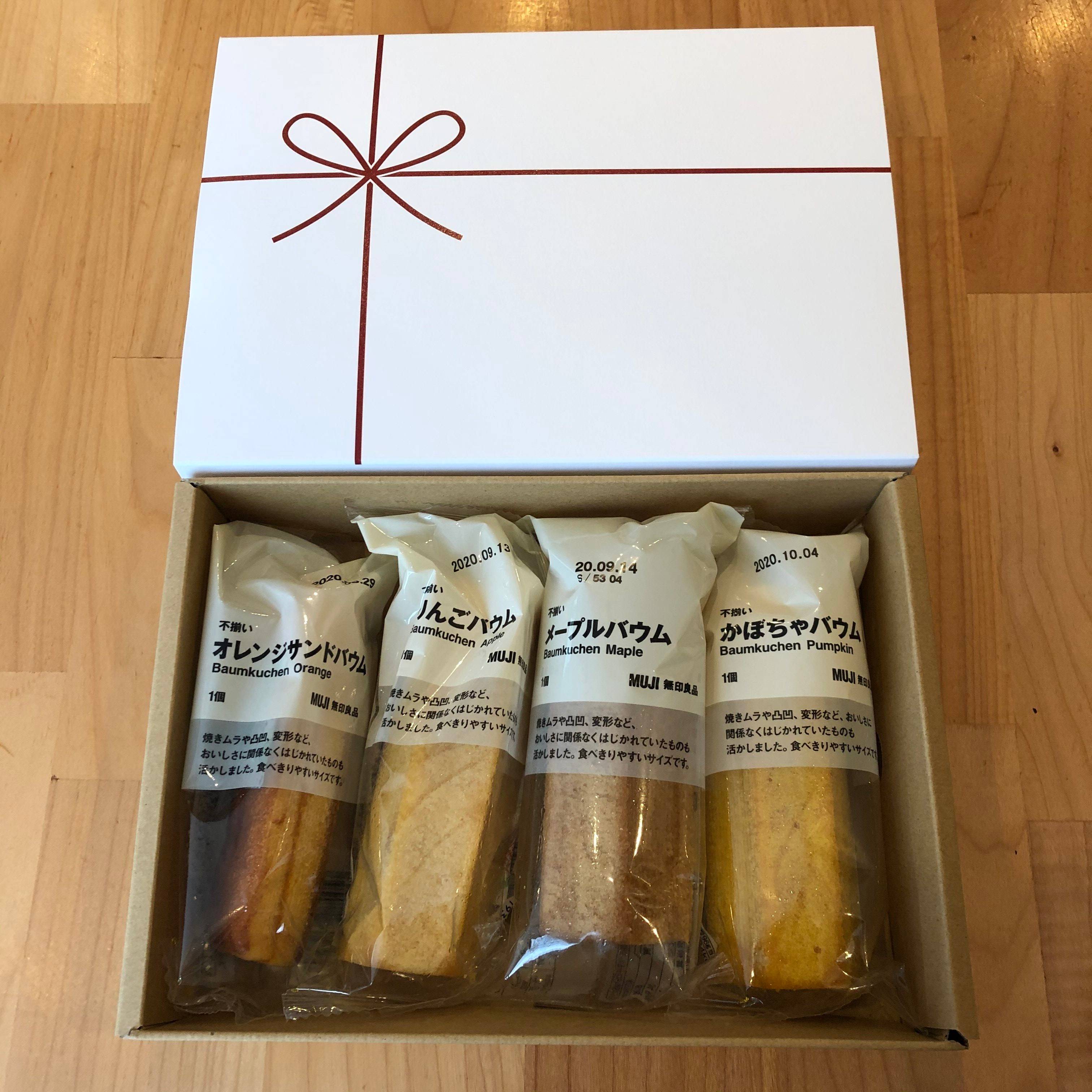 この人気商品不揃いバウムを4本、または8本買うとギフトボックスに無料で入れてくれます!