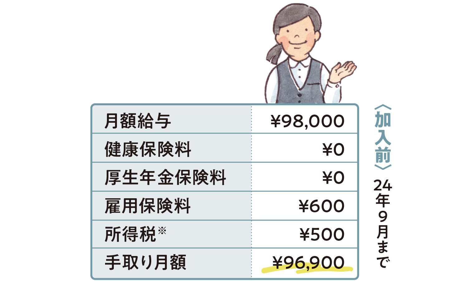 ※月間給与9万円(年収108万円)の場合。