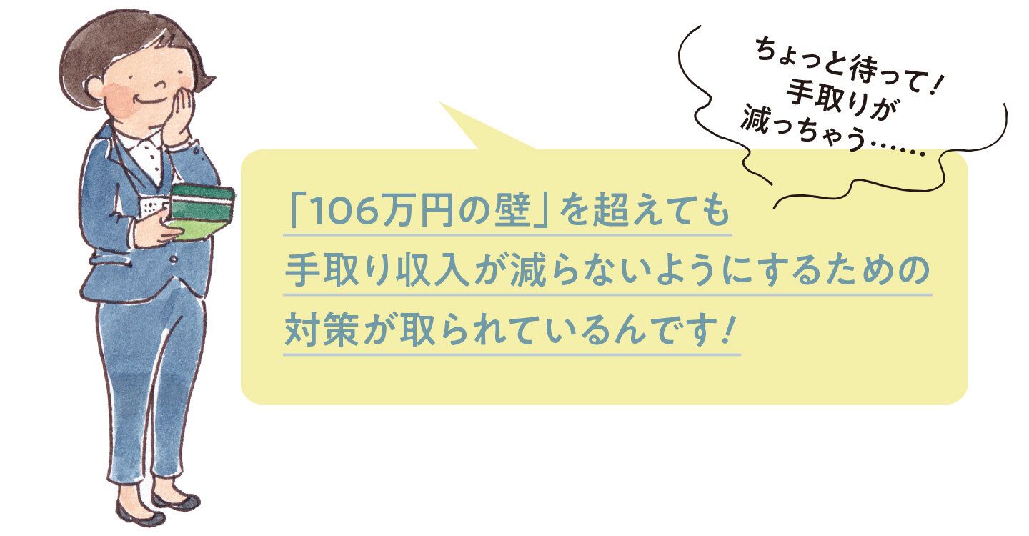 政府は、パートやアルバイトの人が年収の壁を意識せずに働ける施策を実施中。年収106万円を超えて働くなどして新たに社会保険適用となった労働者の手取り収入を減らさないための取り組みを行った会社には、助成金が支払われます。自分にどう還元されるかは、勤め先に確認しましょう。