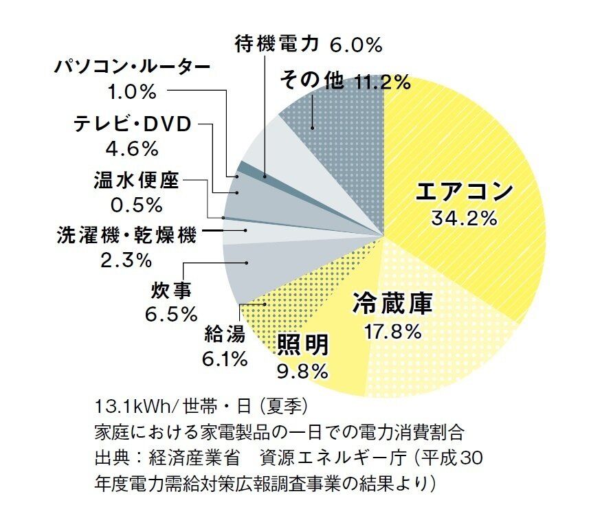 2 電力消費割合が多い4大家電の節電習慣や買い替えが効果的!