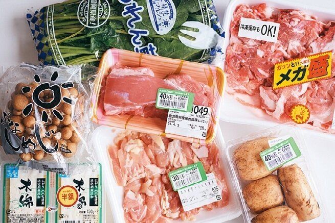 節約の強い味方の鶏胸肉や豚こま切れ肉を多用し、食費をダウン。「買ってOKな基準価格を決めておき、安いときにまとめ買い。すぐ使わない分は小分けして冷凍保存します」。