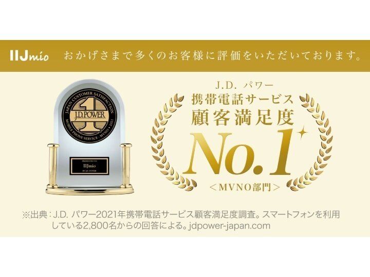 IIJmioは今年、J.D. パワーの携帯電話サービス顧客満足度調査やJCSI(日本版顧客満足度指数)調査で顧客満足度1位になるなど、外部機関から高い評価を得ています。