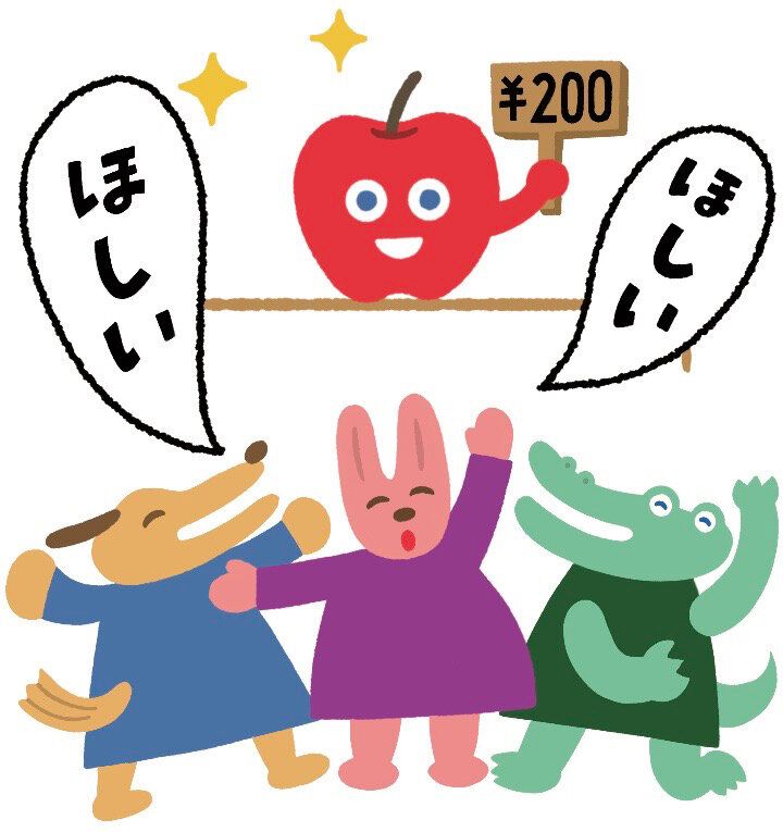 りんごが欲しい人がたくさんいると、値段を上げても売れる