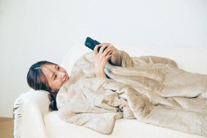 毛布にくるまりながらスマホが見られる。