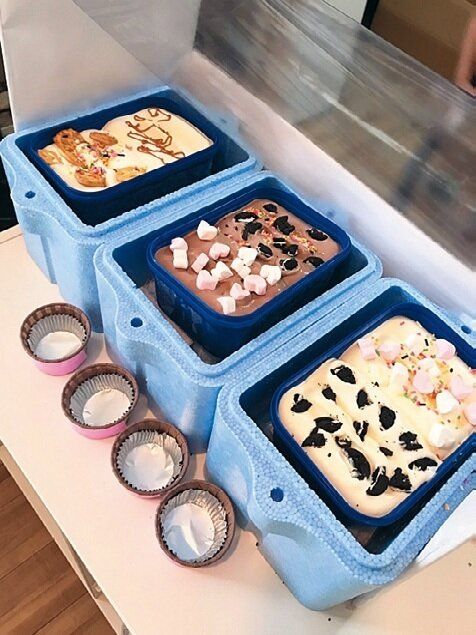 - 大容量アイスにクッキーやマシュマロをトッピング