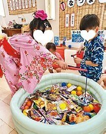 ●ビニールプールでお菓子釣り