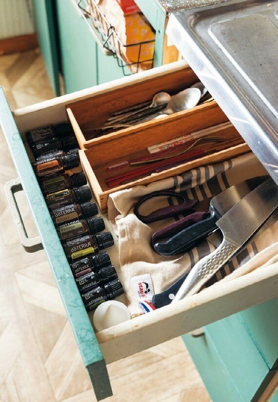 朝イチでアロマをセット。「やる気が出ないときは、ムリに頑張らずに目を閉じて、香りに癒やされます。気持ちが落ち着いてきたら、ゆっくりと片づけ始めればいいんです」。
