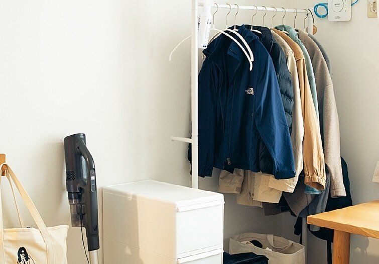- 上着やコートは玄関近くのラックに掛けてリビングに持ち込ませない