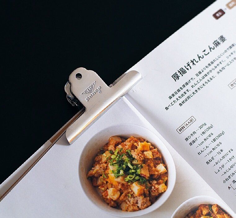 肝心なときにぱたっと閉じる料理中のレシピ本(イラッ)は、長さ10cmのクリップで挟めば閉じる心配なし。
