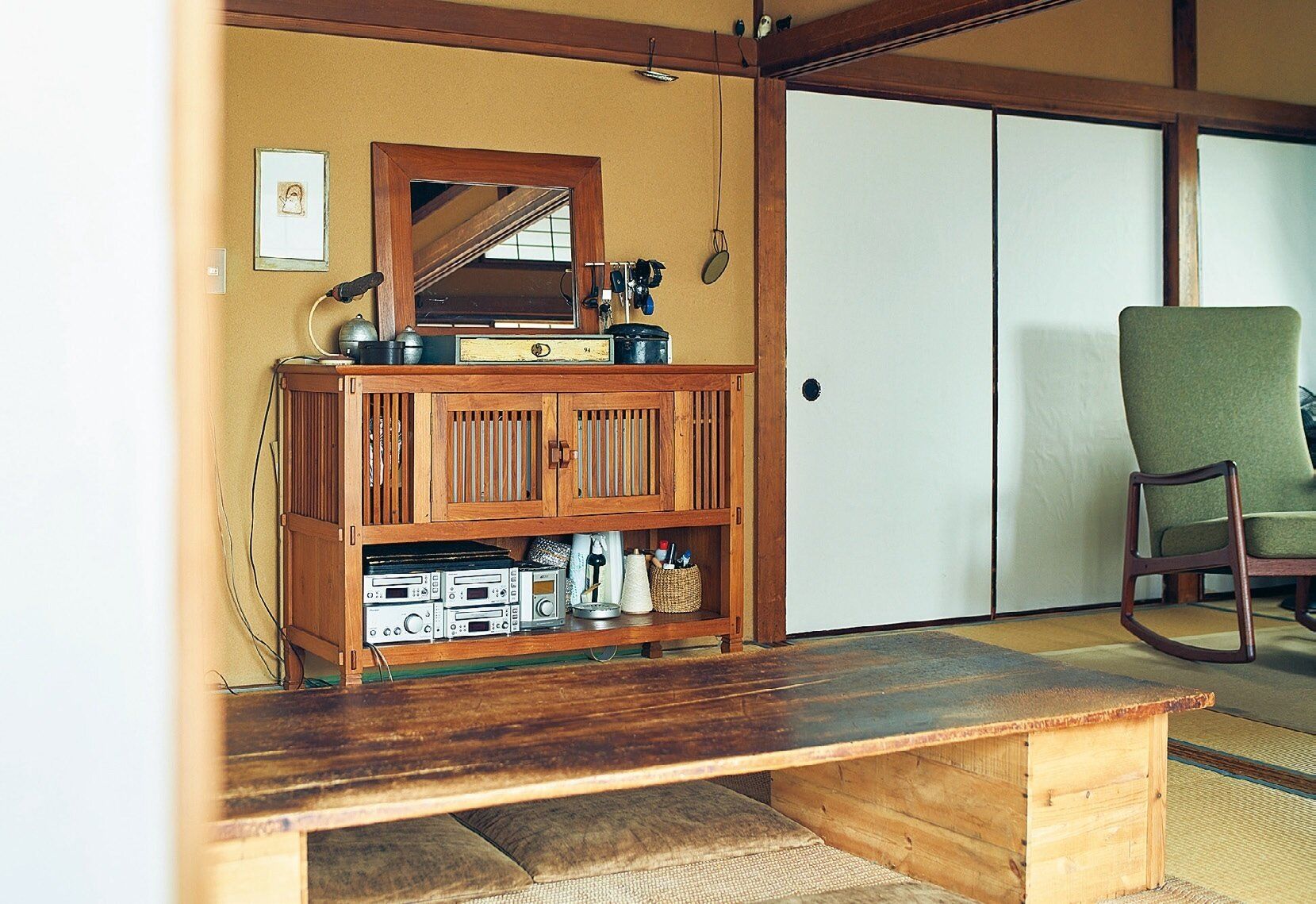 古い平屋に暮らす一田さん。和室二間のふすまを外し、ひと続きのリビングにしています。