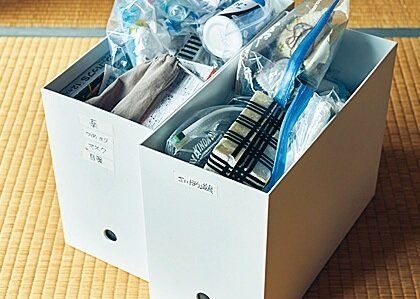 薬や裁縫道具などは、ファイルボックスに入れるだけ。棚の扉を閉めれば見えません!