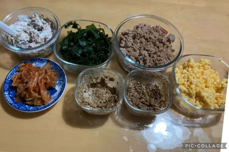 そこで、おうちごはんを思いっきり楽しむことに。こちらの写真は、家族みんなが大好きなおにぎりパーティーのとき。おかか、粉チーズ、豚そぼろ、冷凍コーン、わかめなど自宅にあるものを具材にし、白いごはんを準備したらスタート!具材にマヨネーズやコチュジャン、めんつゆなどを混ぜて味の変化をつけながら楽しみます。小さい子どもたちも自分でつくっているという過程が楽しく、4人で4合のごはんを食べるほど、大盛り上がりなのだそうですよ。