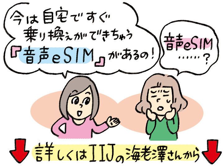 乗り換え自体は、「やったことがないと不安になりますが、案外簡単にできます!」とすずさん。すずさんの場合、「申し込んでからSIMカードが3~4日で届き、装着後、開通の電話や設定をするだけでした」。それでも時間がかからず簡単だと思ったのに、「今なら、音声eSIMで乗り換えれば、私のように、待つ時間もなく最短即日開通可能と聞いてさらにびっくり」したそう。