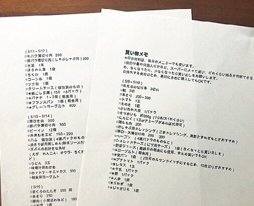5 献立&買い物メモ作成