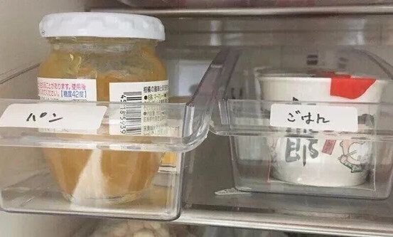 写真は冷蔵庫内。家族が開けることも多いので、「早く食べてね」と分かりやすいようにラベリングしておきます。野菜室には、切った野菜や、そろそろ消費してしまいたい野菜を置くスペースを。冷凍庫も同様に小さなスペースを定位置にしています。