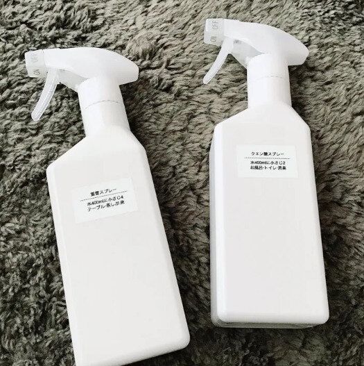 なべあつこさんのお宅では、おもに重曹とクエン酸を使っています。重曹は、テーブルを拭いたり、床掃除につかったり。クエン酸はお風呂やトイレ掃除、消臭などにも。洗剤も、トイレ専用、お風呂専用などと買っていると日用品代だけでもけっこうな金額に。厳選することで節約につながるのです。