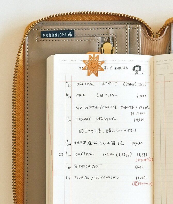 服や雑貨が大好きなので、買った物と値段を手帳につけて「こんなに買ったんだ」という自分への戒めにしています。買い過ぎ&ダブり買い防止にもなって一石二鳥。