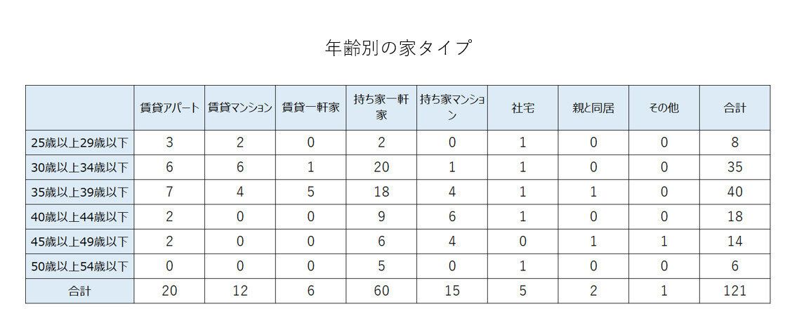 年齢別に住んでいる家タイプを確認したところ、30代から「持ち家一軒家」が急増。比例するように賃貸派が減少しています。