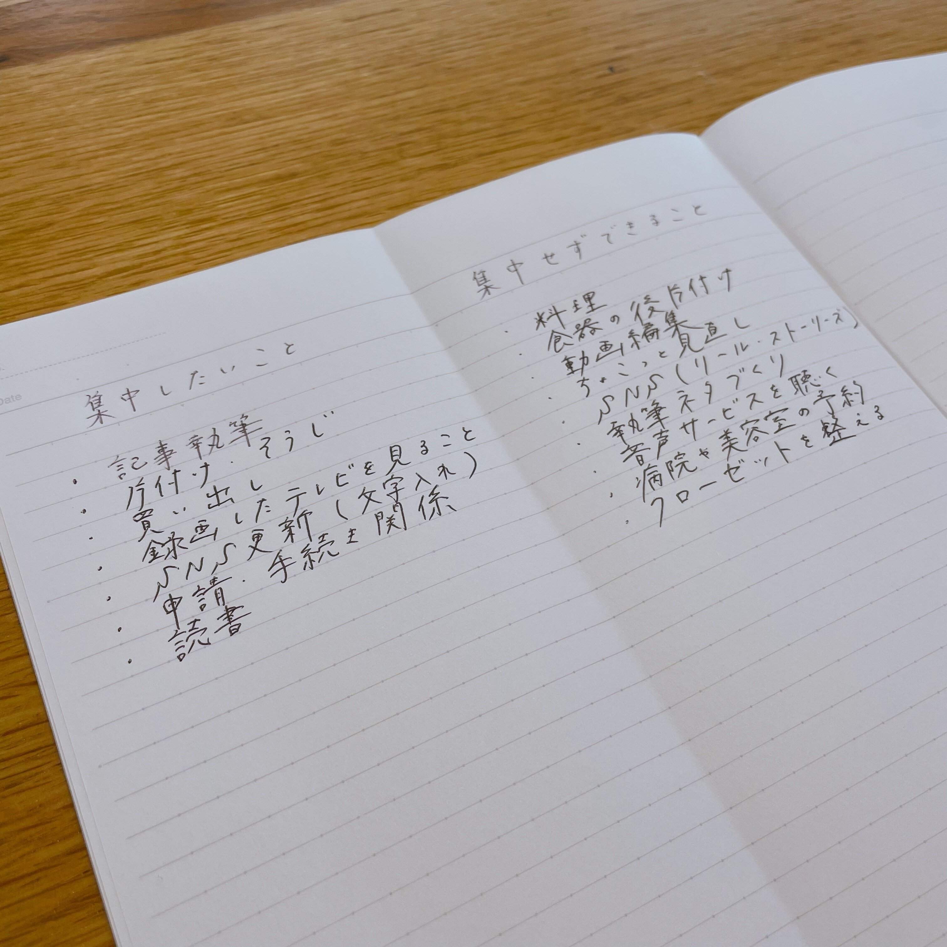 まずは、「集中したいこと」と「集中せずできること」に分類してみます。