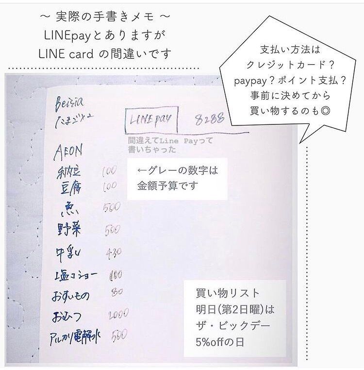 買い物をしているとメモを持ちながら、カートを押している主婦のかたをよく見かけますが、余計なものを買わないため、そして買いたいものを忘れないためにメモを持っていくのは基本ですね。