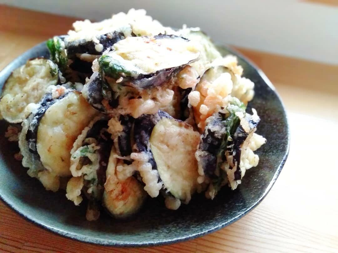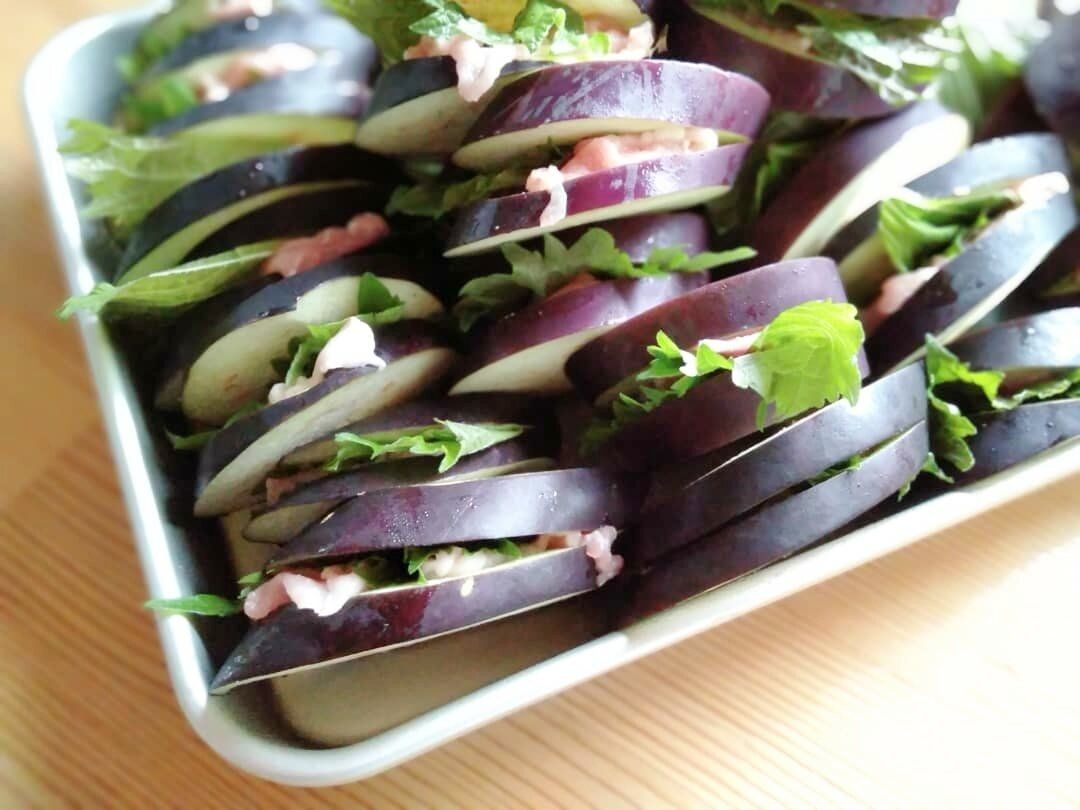 茄子と豚こま大葉のはさみ天ぷら