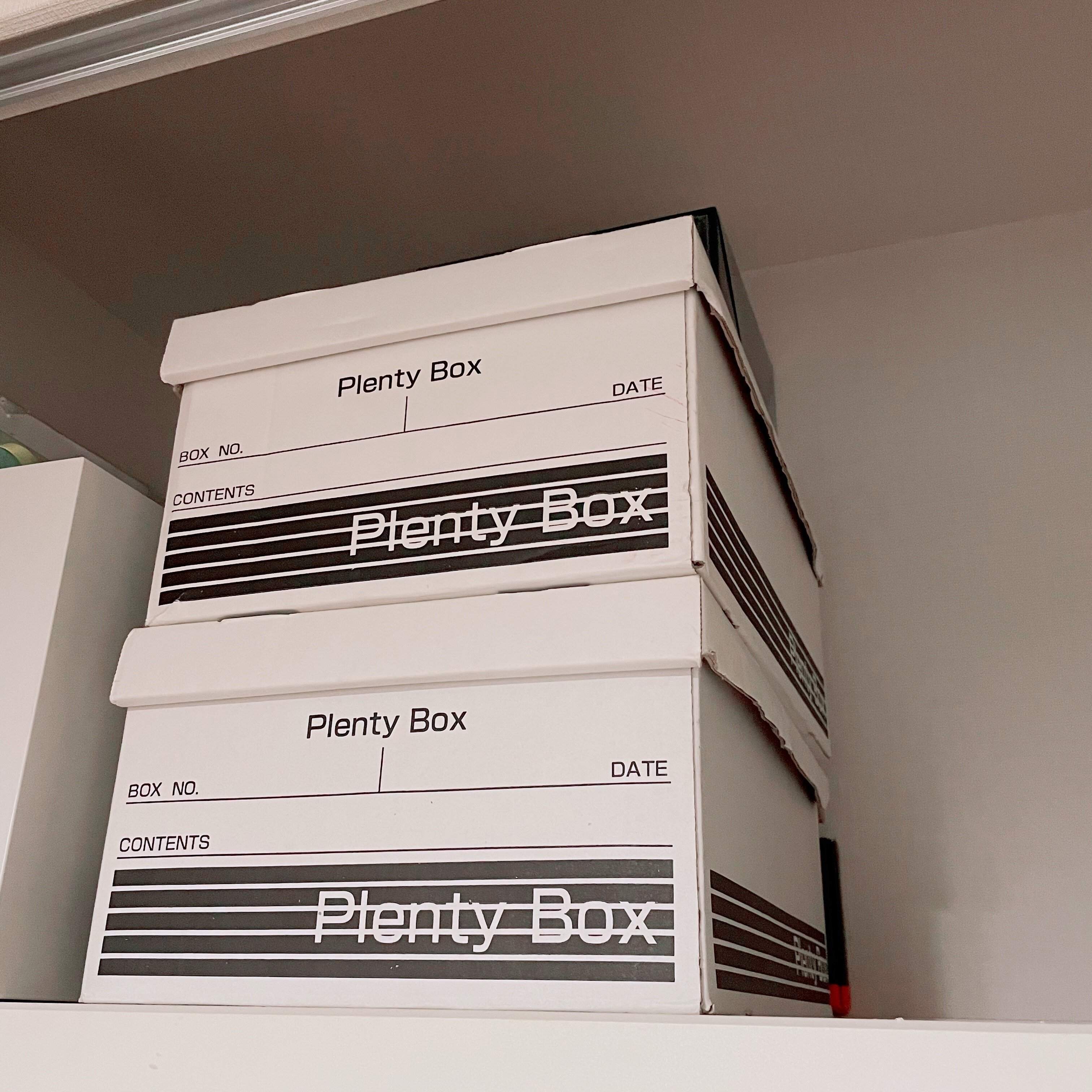 細々した空き箱がプレンティボックスに収まり、ただ積み上げただけの時よりも見た目も気にならず、管理もしやすくなりました。