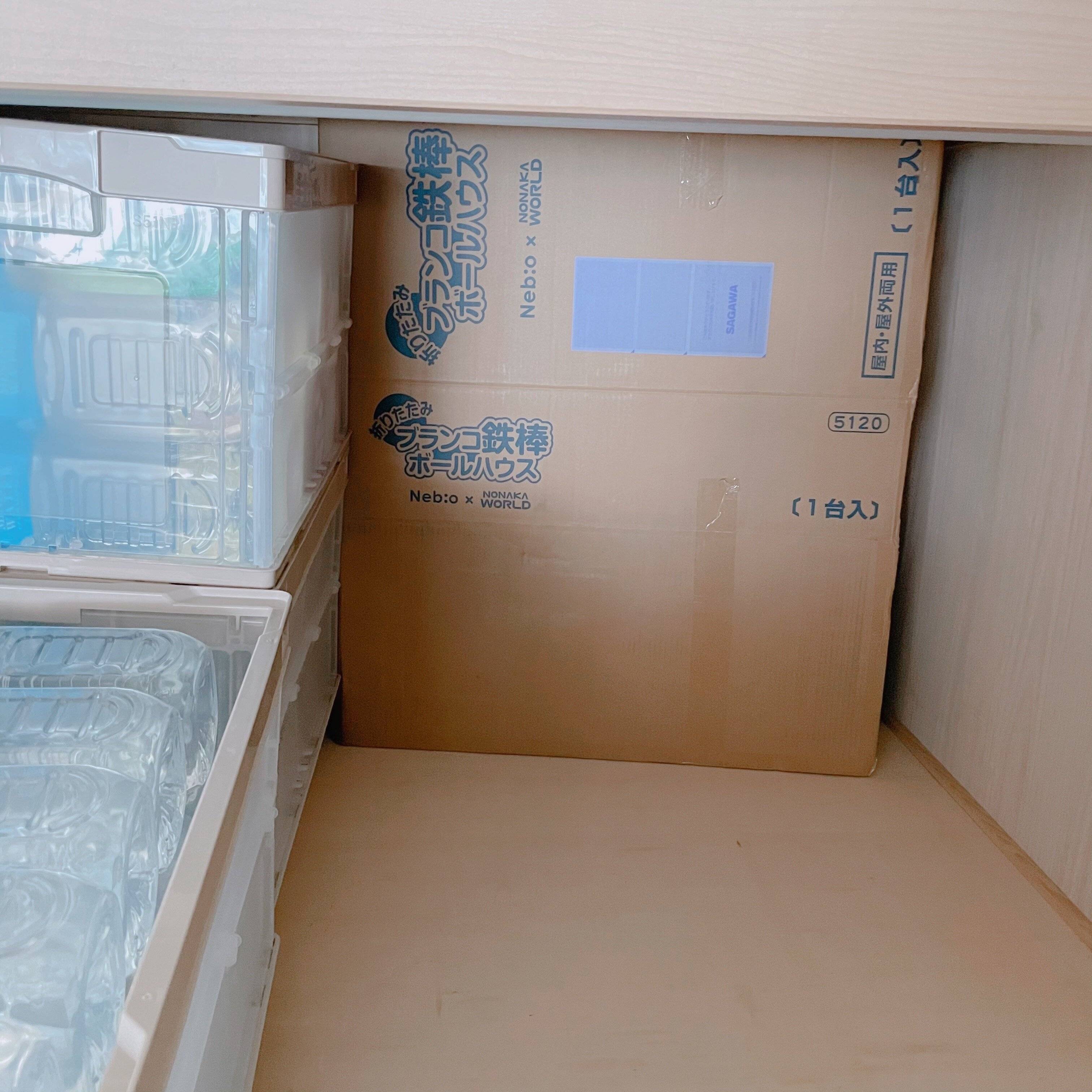 箱を潰して収納することも考えましたが、箱の中に説明書や仕切り、付属部品が入っていたので、箱のまま保管することにしました。