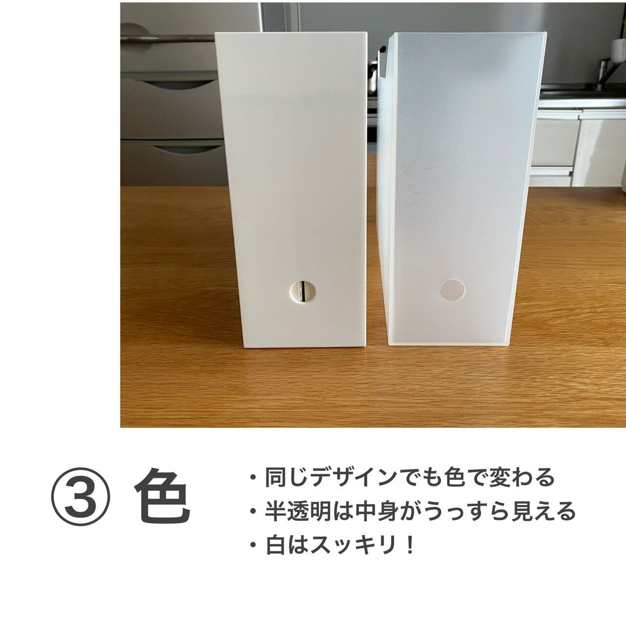 片づけが苦手なかたにとっては、半透明のケースなどの中身が見える色の方がものの管理がしやすくなる場合もあります。