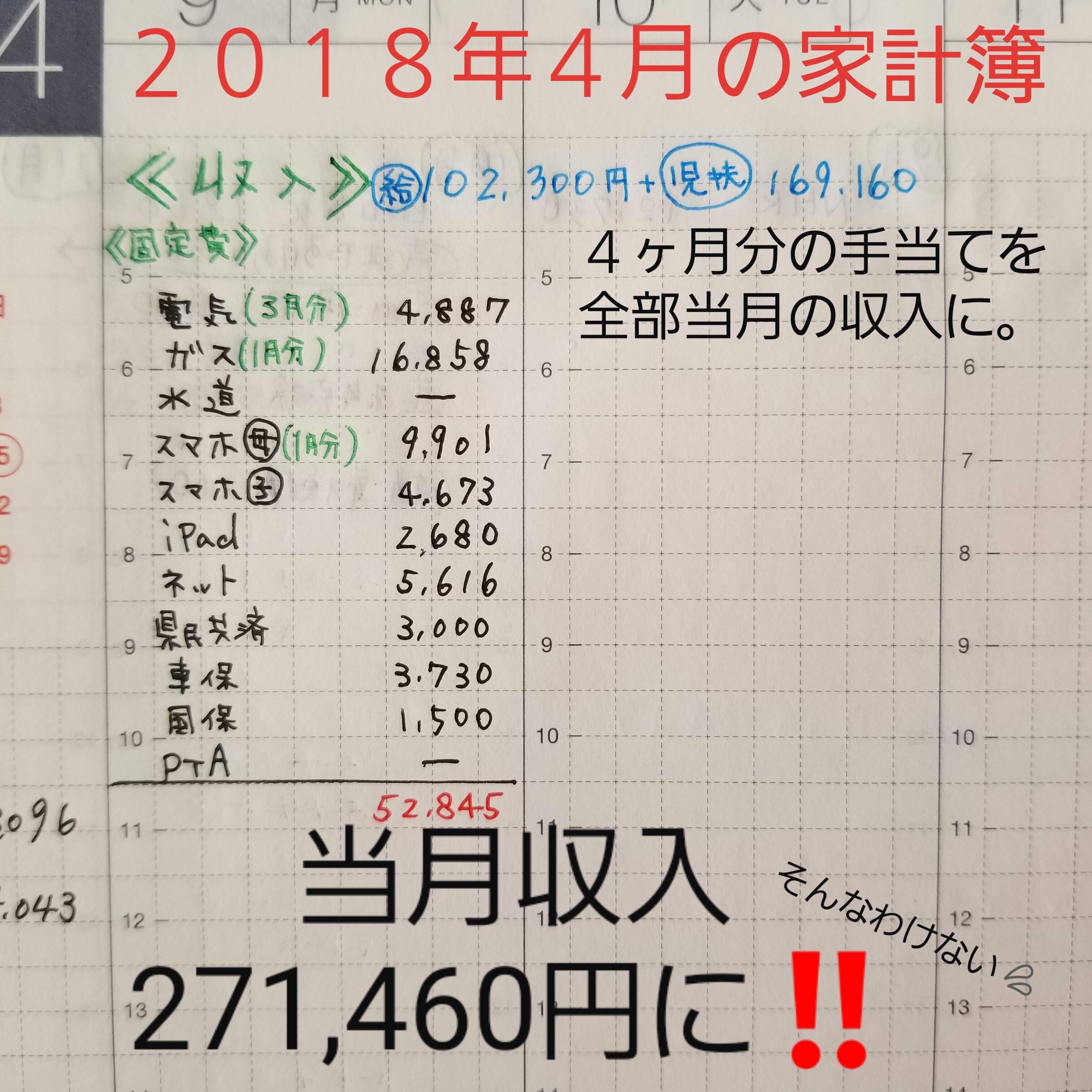 写真は、前月にひとり親手当を全部使ってしまったため、貯金を切り崩すことになったときの家計簿。