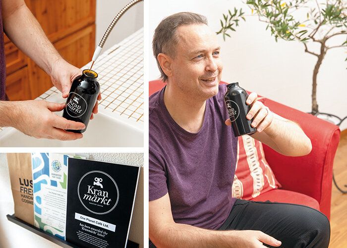 「今、スウェーデンではペットボトルを減らすために"蛇口から水を飲もう!"というキャンペーンをやっています。僕らの会社は日本で第1号の登録なんですよ」とペオさん。もちろん、ふだんからマイボトルを持ち歩いていて、「マイボトルでアルカリイオン水をいつでも飲めるのがうれしいですね」(ペオさん)