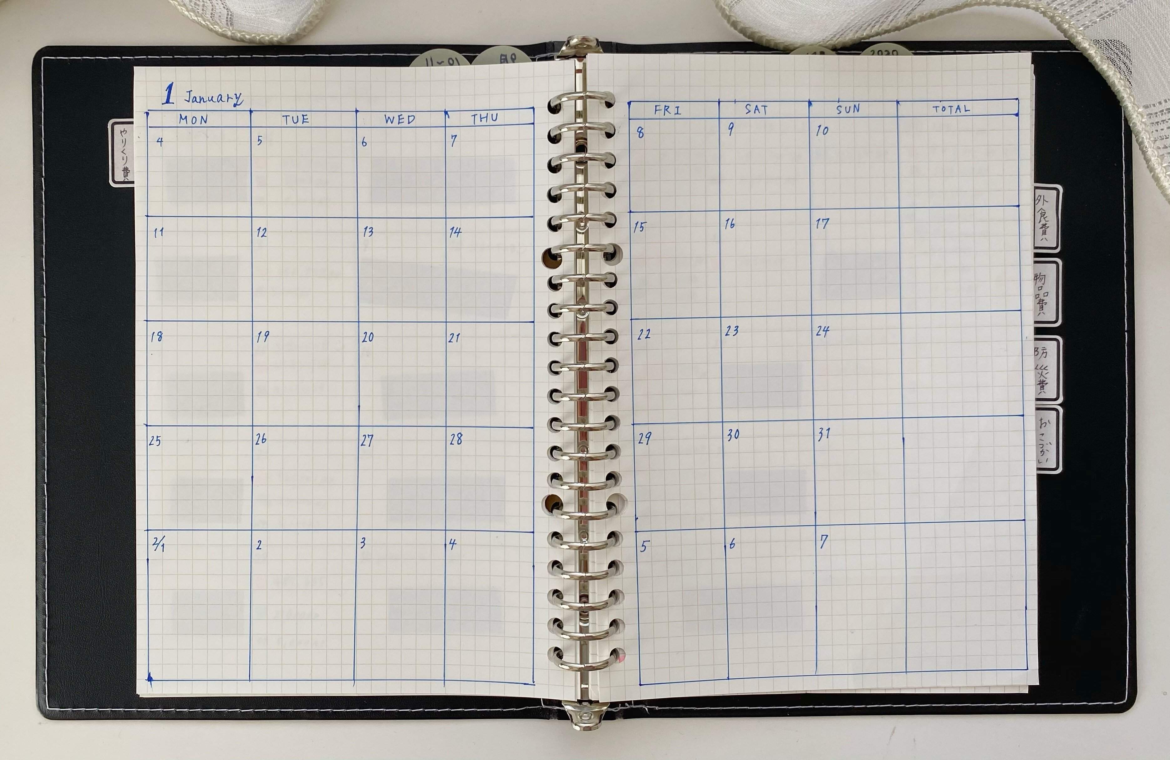 締め日がスライドしていくので、日数の管理が必要になります。カレンダーや手帳のマンスリー欄に35日間の締め日を記入しておくと分かりやすいですよ。数えるのが手間なかたは日数計算してくれるサイトもあるので活用してみて下さい。私は毎月、自分で35日間家計簿のカレンダー枠をつくっています。