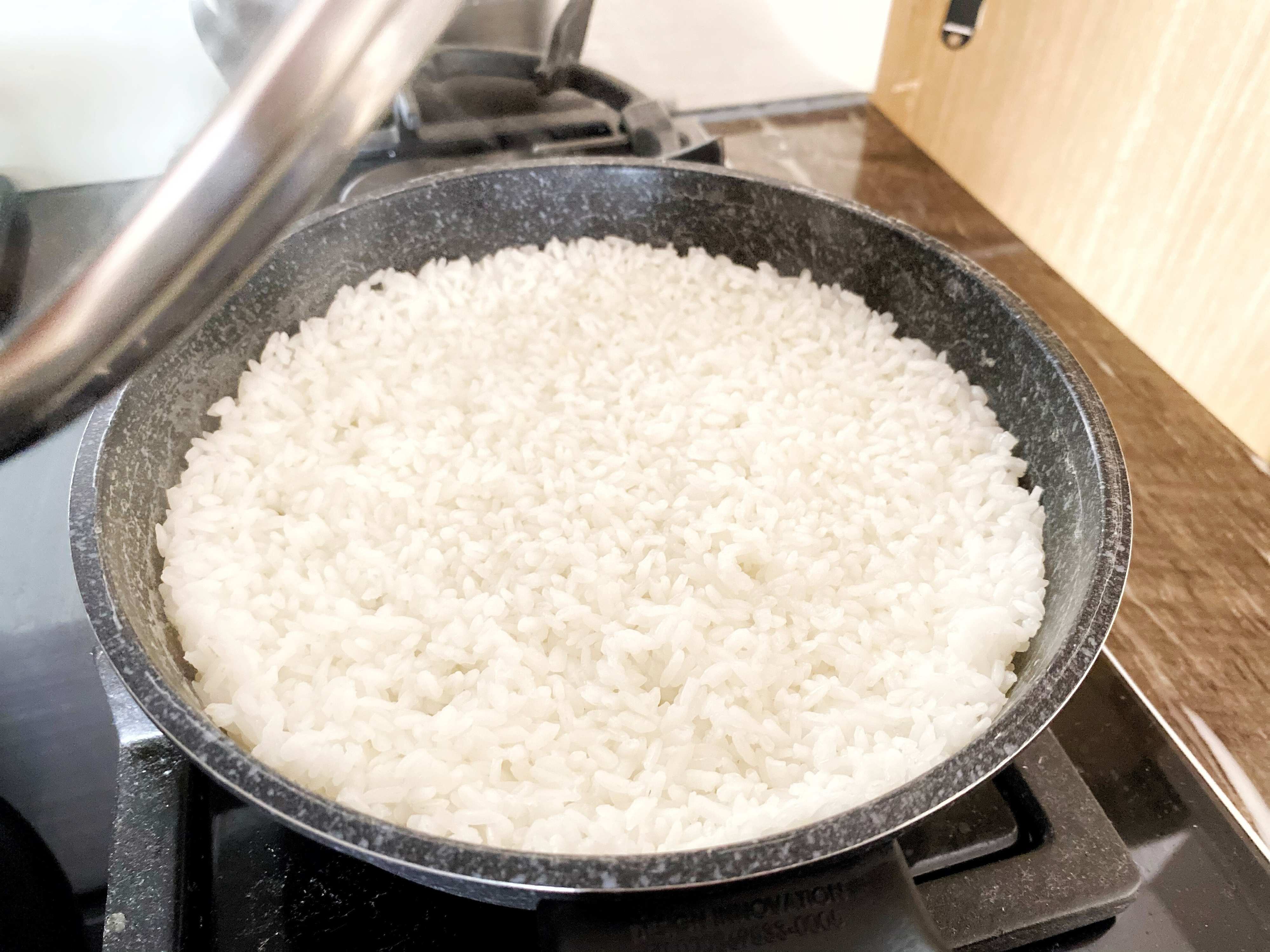 炊飯器をやめてフライパンでご飯を炊くことにしました。フライパンでもおいしくご飯が炊けますよ♪フライパンは熱伝導率が高いので火の通りも早く、一合分のご飯なら10分〜15分くらいで炊けます。なので、うっかりご飯を炊くの忘れた!という場合も安心。炊飯器の早炊きより早く炊けるので便利です。