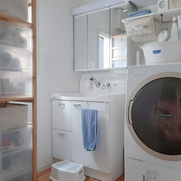 基本、ベランダに洗濯物を干しません。我が家の洗濯ルーティーンは、夜寝る前に乾燥出来る衣類だけを洗濯乾燥機に入れてスイッチオン。朝起きたら乾燥まで済んでいます。(乾燥できない衣類は別で洗濯してお風呂場に干しています)朝一の家事は洗濯物の仕分け。タオルや下着や部屋着などは脱衣所に収納しているので動線が短く戻すのが楽です。子どもの洋服とキッチンクロスなどだけ2階のリビングに持って上がりますが少量なので直ぐに戻せます。朝一に洗濯が終わっているとシーツやマット類を洗いたい時もスムーズに洗濯することができます。