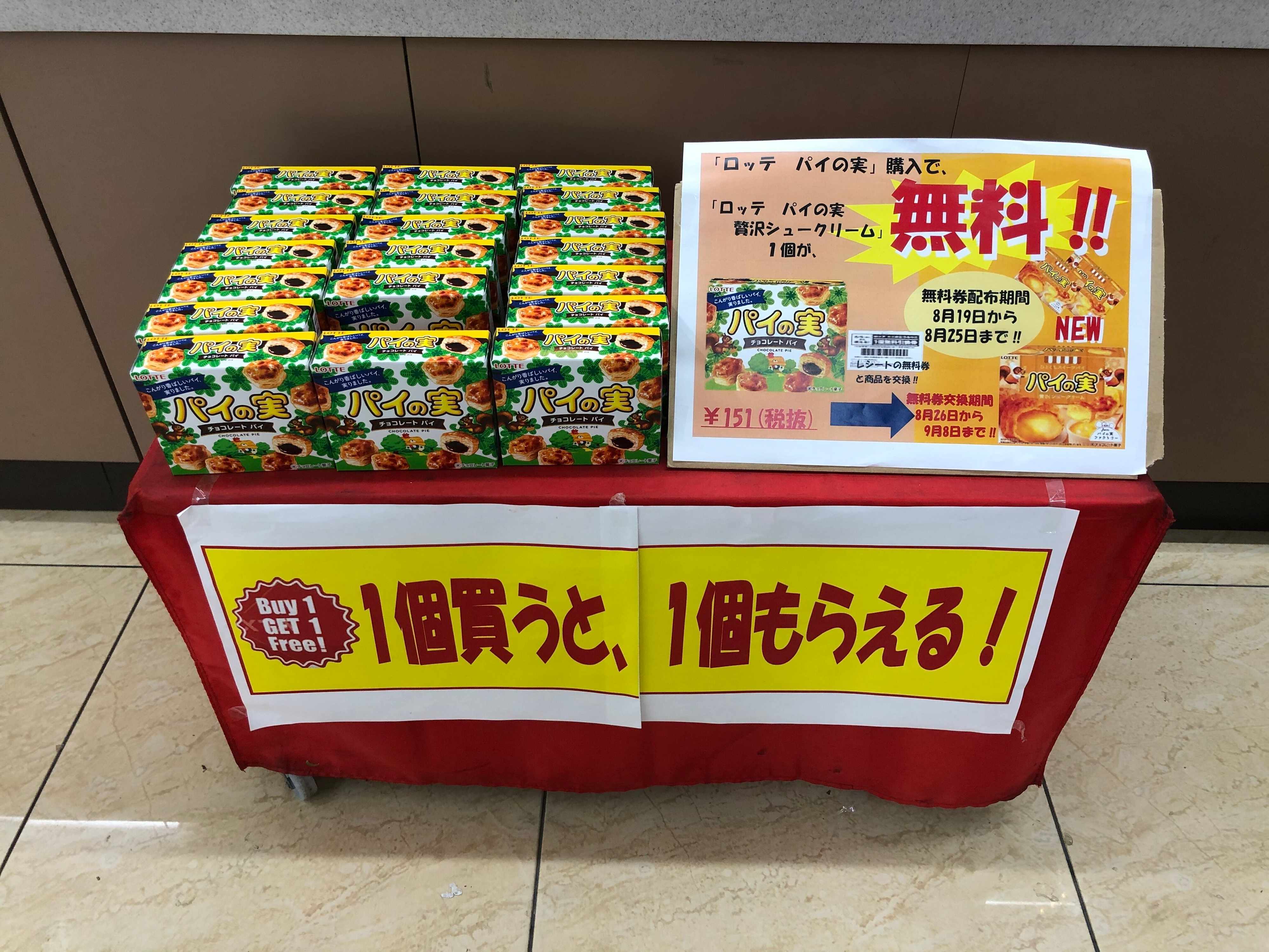 定番の「パイの実」を1個買うと、新作が1個無料!!これは買っちゃいますよね〜