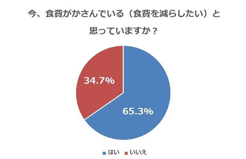 今、食費がかさんでいて減らしたいと思っているか?という質問に「はい」と答えた人は65.3%でした。