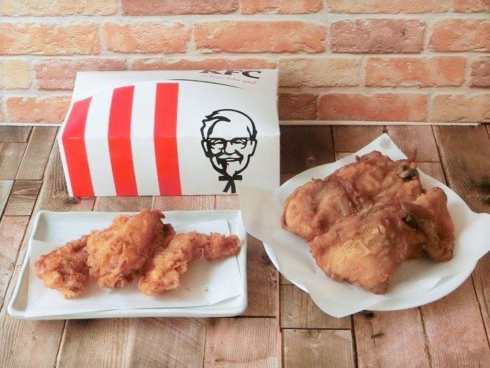 早速クーポンを使って購入してみました。1回に3セット購入できるので、チキンとクリスピーのセットを2セット買いました。オリジナルチキン8つにクリスピー6つで2,000円。家族5人で食べて大満足の量でした。