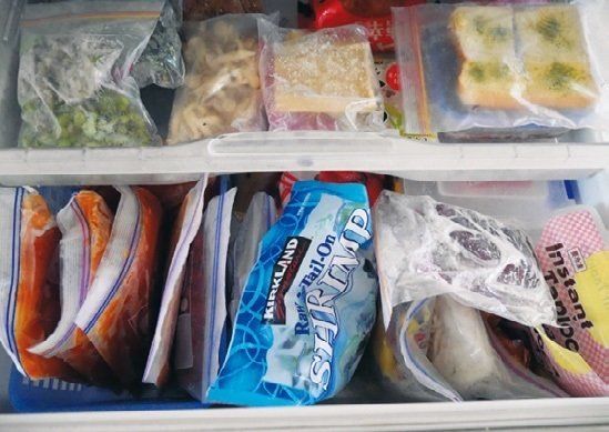 冷凍室には自家製冷食が多く、冷蔵室のトマトも洗い済み。野菜室に腐りやすそうな使いかけの野菜はなく、見やすく整理されています。