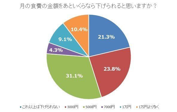 約半数の人が食費をあと3,000~5,000円下げられると回答