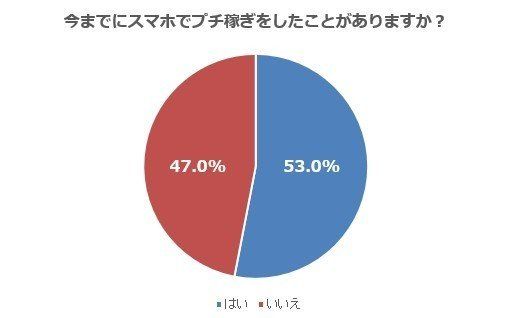 「今までにスマホでプチ稼ぎしたことがあるか」と聞いたところ、53.0%の人が「はい」と回答しました。