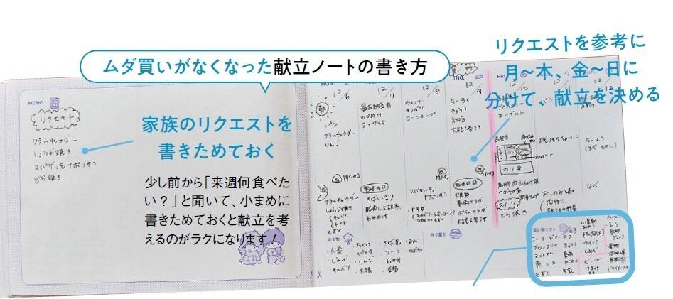以前は、スーパーでその日の特売品を適当に買っていたKさん。サンキュ!アンバサダーくぅちゃんの献立ノートを参考にしたら、なんとムダ買いがゼロに!